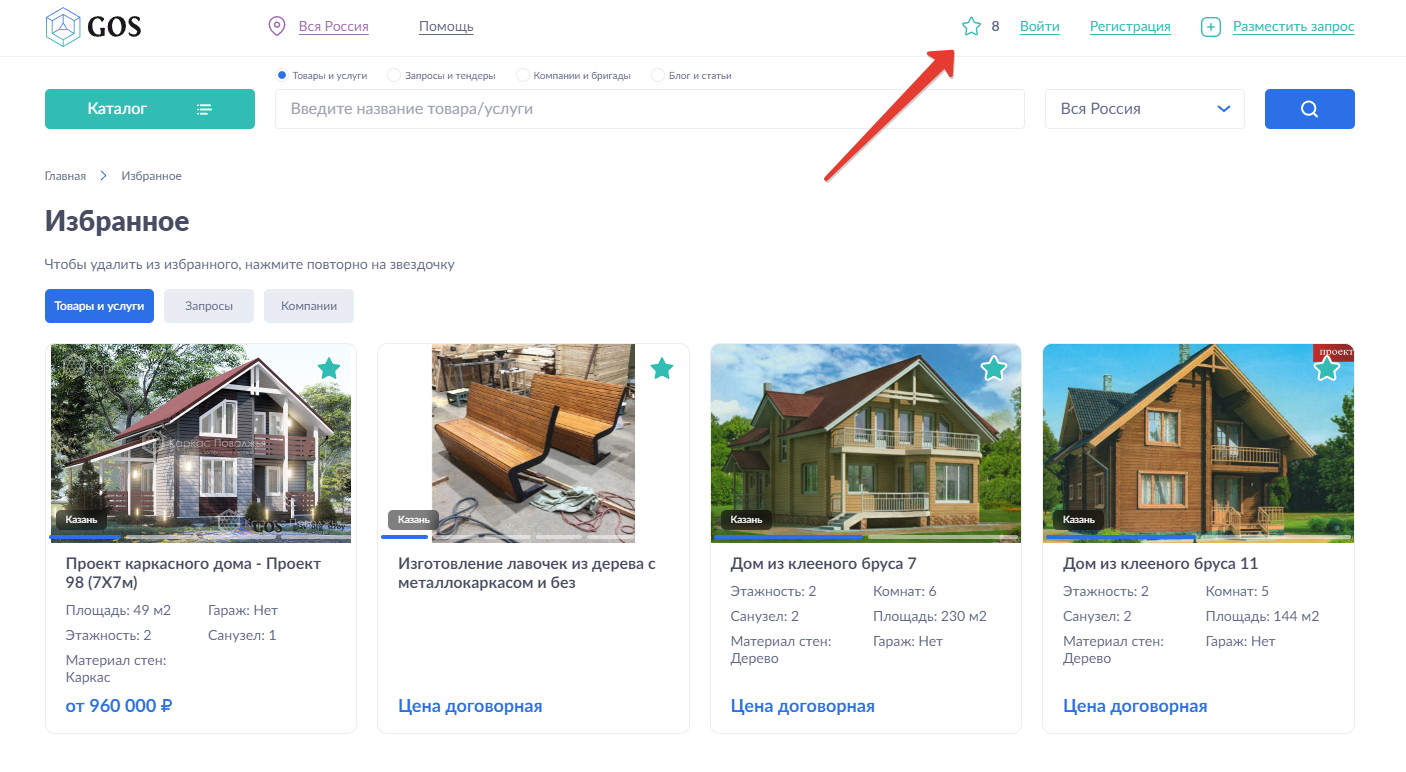 2. Добавление товаров, компаний и статей в избранное