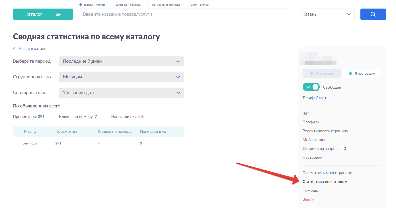 Детальная статистика по каждому объявлению, а так же по всему каталогу с сортировкой по дням, месяцам, неделям.