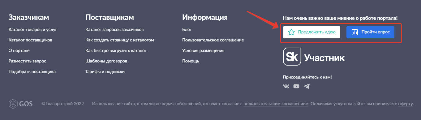 Нажмите на одну из ссылок в подвале сайта, чтобы предложить идею или написать отзыв о работе портала