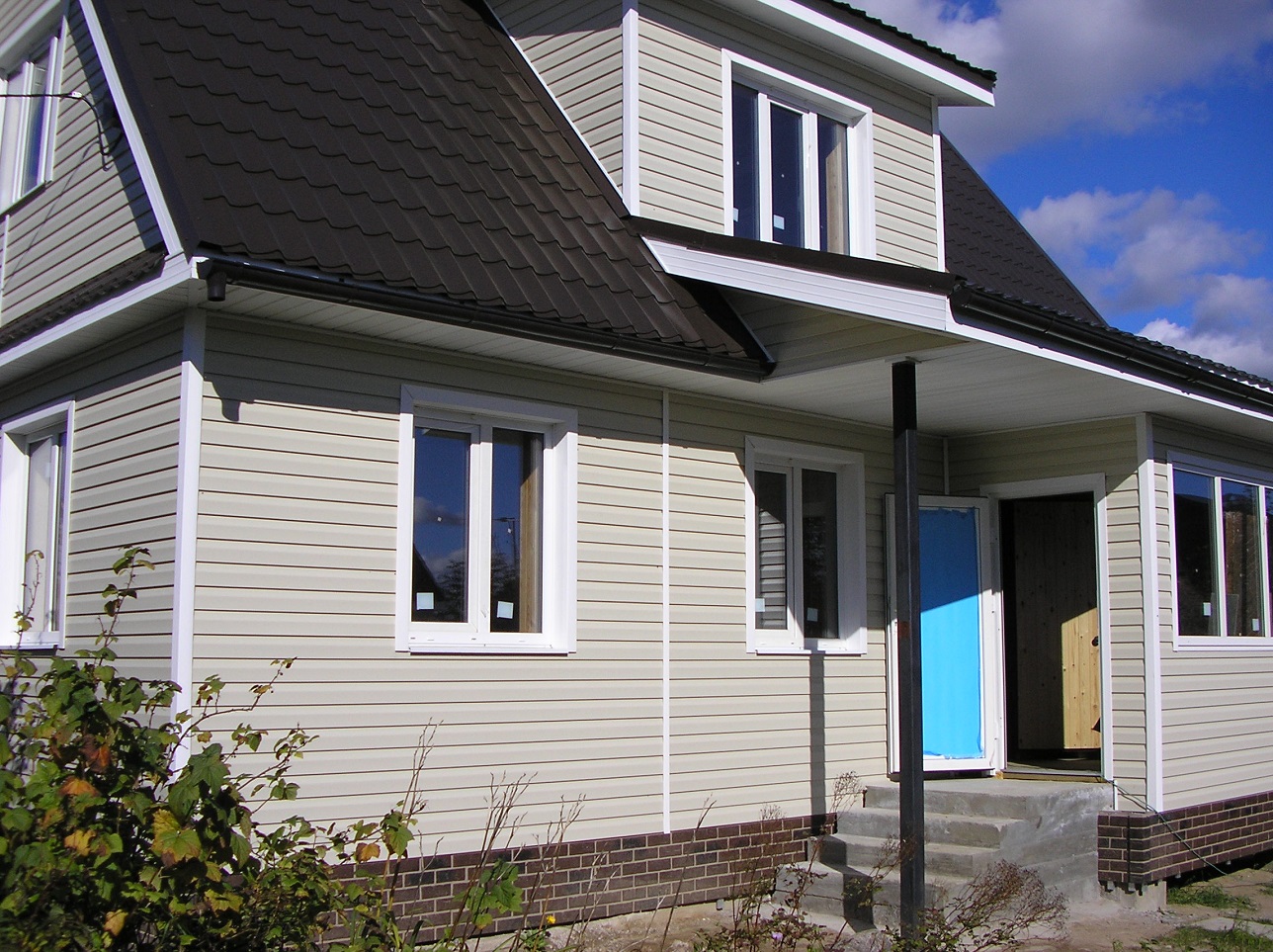 Виниловый. Панели для фасадов, которые изготовлены из полимеров высокого качества. Он прочный, легкий и очень устойчив к природным изменениям. Достаточно низкая стоимость, что позволяет использовать его с целью экономии. Имеет длительный срок службы, стойкий к влаге. Так как это искусственный материал, он не разлагается в природе и обладает водонепроницаемостью. Приобрести его можно в любом магазине. Существуют минусы такого проекта, о которых надо помнить: не придаст вашему дому дизайнерской изюминки (в дешевом материале и дом смотрится дешево и однообразно), боится нагрева и удара, не горит, а плавится (может выделять вредные вещества), при низких температурах становится хрупким, боится нагрева. Производить работы с пластиковыми панелями можно в любое время года (учитывая при этом его особенность менять свойства при изменениях температур).